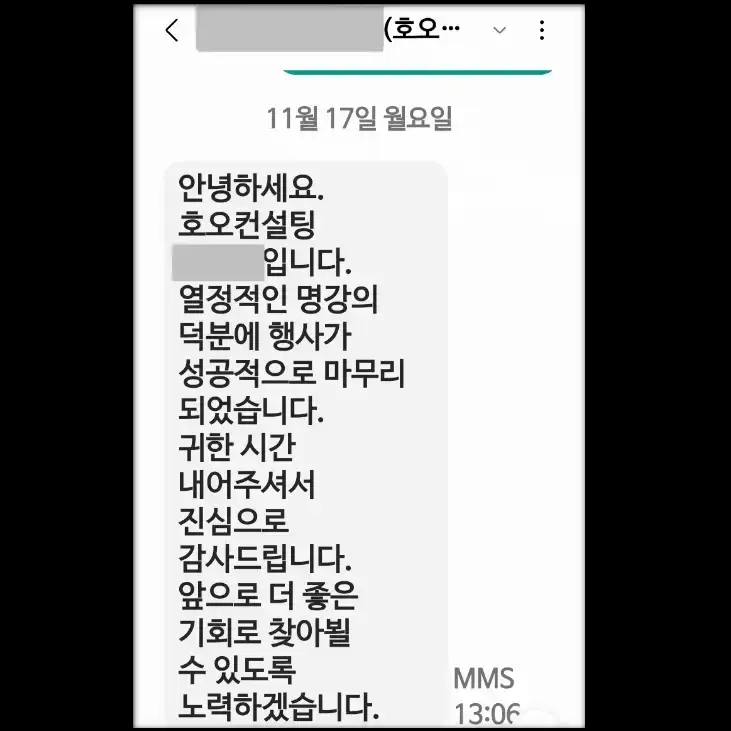 이번 행사 후 컨설팅사로부터 아래와 같은 메시지를 받았습니다.
